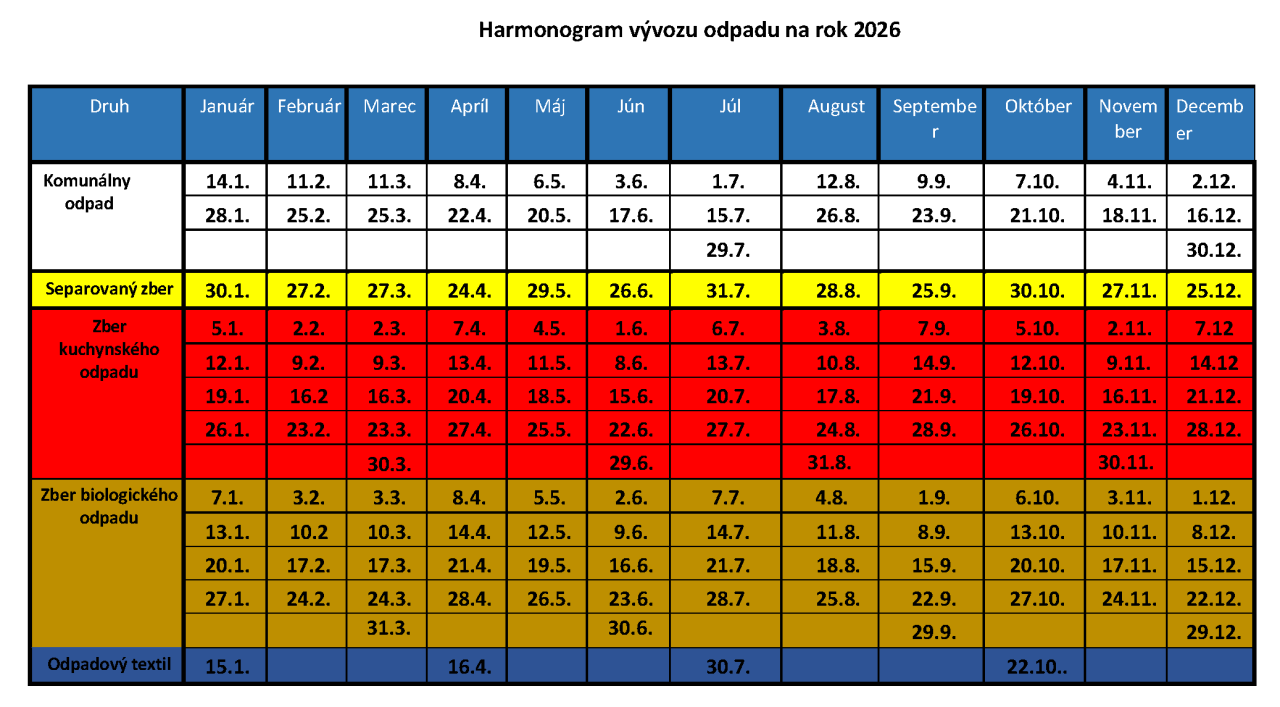 Harmonogram vývozu odpadu na rok 2026