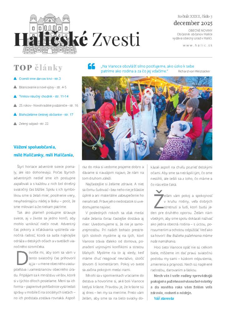 Haličské zvesti - december 2025 Typ: PDF dokument, Veľkosť: 4.74 MB